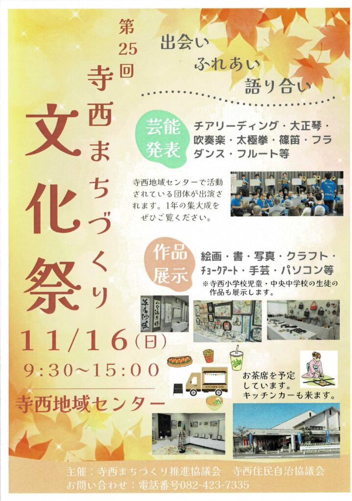 寺西地域の文化祭。いろいろな催し物があります。ぜひ、お誘いあわせの上おこしください!